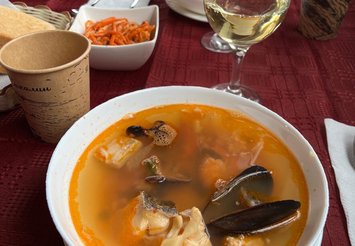 На этой экскурсии вы познакомитесь с уникальной флорой и фауной озера Буссе. Кроме того вы подержите в руках и полюбуетесь гигантской устрицей, трубачем, морским ежом, увидите как прячется в грунте и пускает фонтанчики ракушка спизула и как маскируется в зарослях анфельции крабоид Кузнецова. А наш шеф-повар приготовит Вам на огне сахалинские деликатесы.