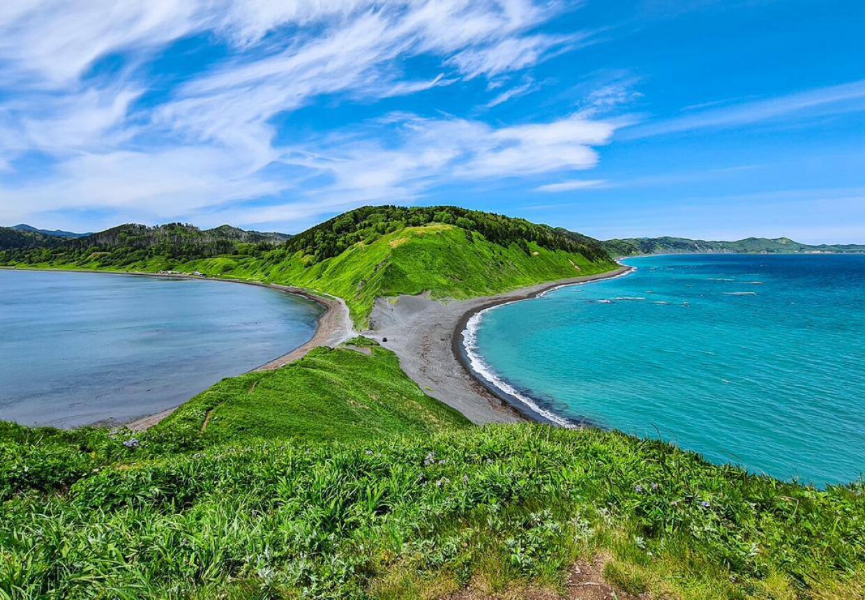 Когда добираешься до места назначения, открывается потрясающая панорама на местные творения природы. Забравшись на гору высотой 51 м., можно почувствовать, что смотришь на остров со стороны. Необыкновенное ощущение полёта. Вид с верхней части мыса на юг, до мыса Павловича. За ним крайняя юго-восточная точка Сахалина - мыс Анива. Вокруг горы, кристально чистая вода, свежий морской воздух и каменный ландшафт.
